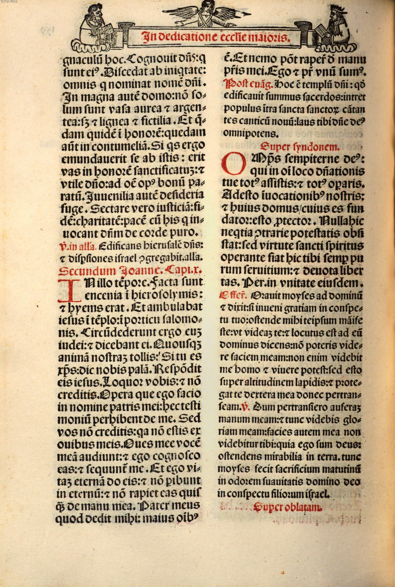 Facta sunt tunc Encaenia in Hierosolymis. Hiems erat; et ambulabat Iesus in templo in porticu Salomonis. Obchodzono wtedy w Jerozolimie uroczystość Poświęcenia świątyni. Było to w zimie. Jezus przechadzał się w świątyni, w portyku Salomona.