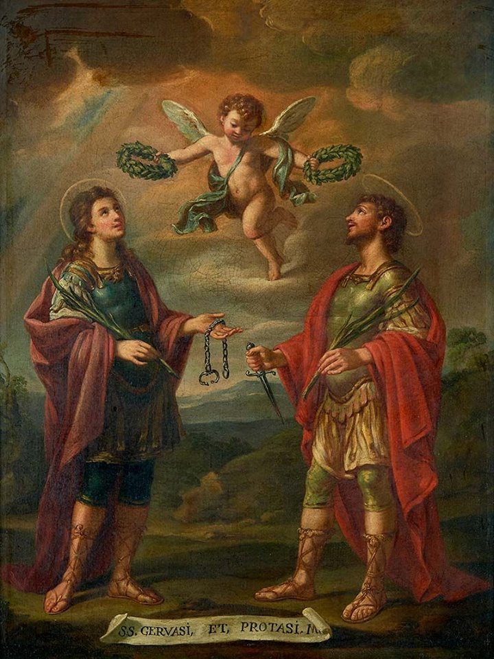 Święci Gerwazy i Protazy żyli w I lub III wieku. Przyjmuje się, że ponieśli śmierć za czasów prześladowań cesarza Nerona lub Dioklecjana. Ich rodzicami byli święty Witalis z Mediolanu i święta Waleria. Ci dwaj święci bliźniacy zostali pierwszymi męczennikami chrześcijańskimi w Mediolanie. Według tradycji święty Gerwazy poniósł śmierć męczeńską poprzez zatłuczenie ołowianymi prętami, a święty Protazy miał zostać ścięty mieczem.