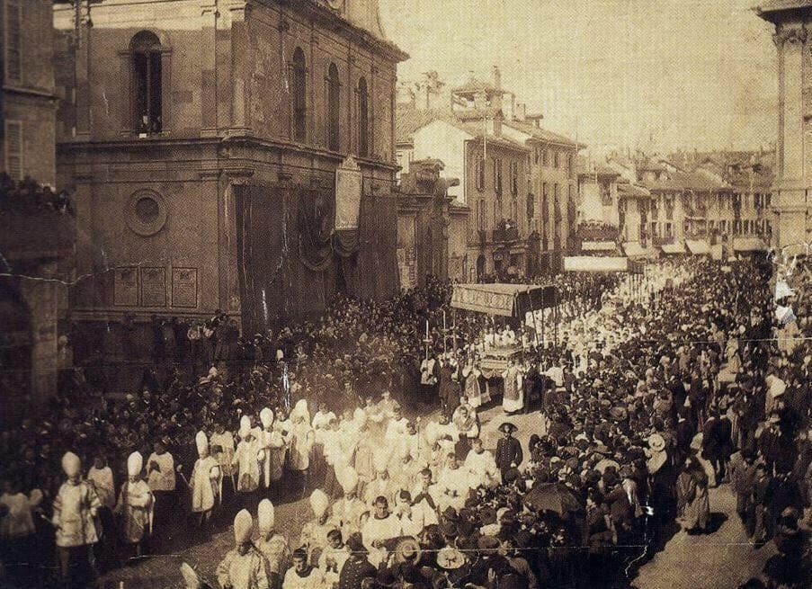 Wielką okazją do świętowania był rok 1897, kiedy to obchodzono 1500-lecie śmierci świętego Ambrożego. W związku z tą rocznicą relikwie świętego były wystawione w katedrze. Odbyła się wtedy wielka procesja. Na początku dwunastu mężczyzn niosło olbrzymi sztandar świętego Ambrożego, za nim niesione były krzyże procesyjne z parafii mediolańskich, później szli przedstawiciele bractw, proboszczowie, duchowieństwo, następnie niesiona była pod baldachimem urna z relikwiami świętych Gerwazego i Protazego, w końcu także niesiona pod baldachimem była urna z relikwiami świętego Ambrożego. Za urną szło ok. dwudziestu biskupów i całe rzesze wiernych.